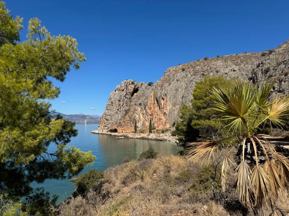 Une jolie boucle, même si techniquement, c’est plutôt un sentier aller-retour sur sa grande partie qui permet de longer un chemin de ronde sous les fortifications de Nauplie avant de rejoindre la jolie baie de Paralia Karathonas. Un intérêt baignade également puisque le sentier longe de superbes criques désertes.