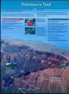 Nous descendons la Keonehe’ehe’e trail (sliding sands trail) sur 6,3 km puis bifurquons à gauche sur 2,6 km en direction de Halali’l et Kawilinau.