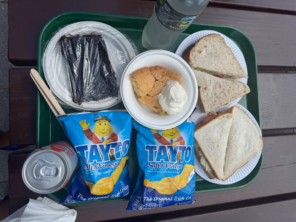 Un cottage sur place permet de prendre le déjeuner, large, choix de snack, sandwich ou autre gâteau à des prix corrects. C’est très bien organisé, et très touristique, mais plutôt plaisant.