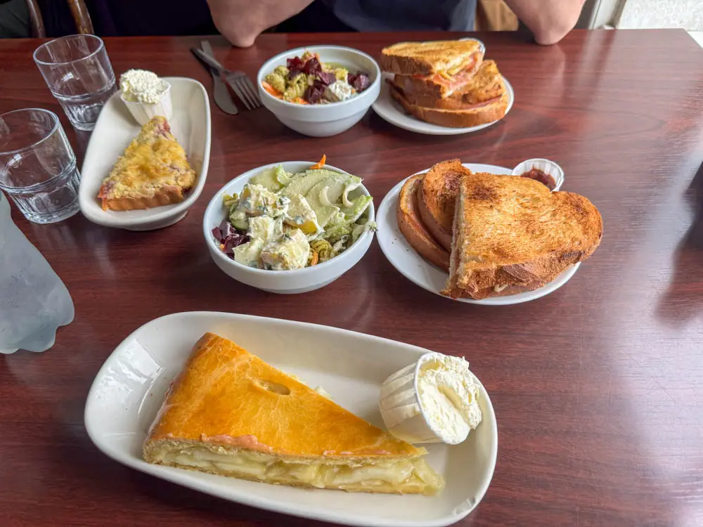 Nous nous installons dans un salon de thé façon boulangerie pour le déjeuner à l’étage. Au menu, deux sandwiches, salades et gâteaux maison. Une bonne adresse, à défaut d’avoir pu tester le pub, juste en face, cité par le routard qui était bondé. La Bakery de notre choix était également cité dans le routard.
