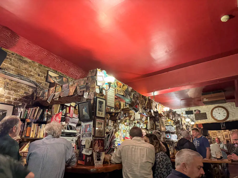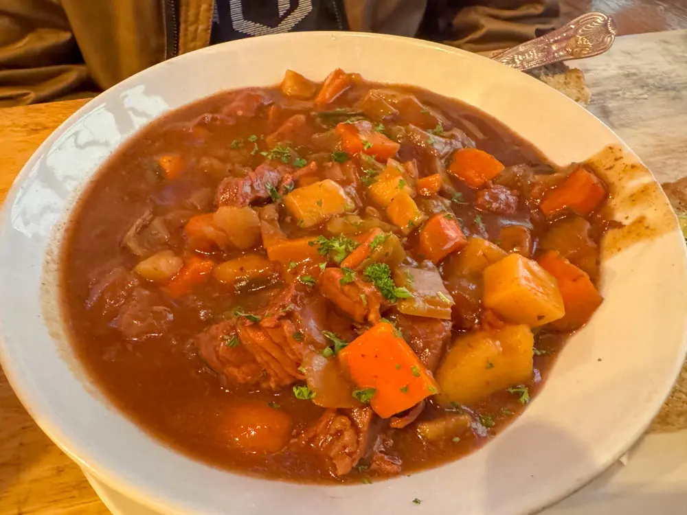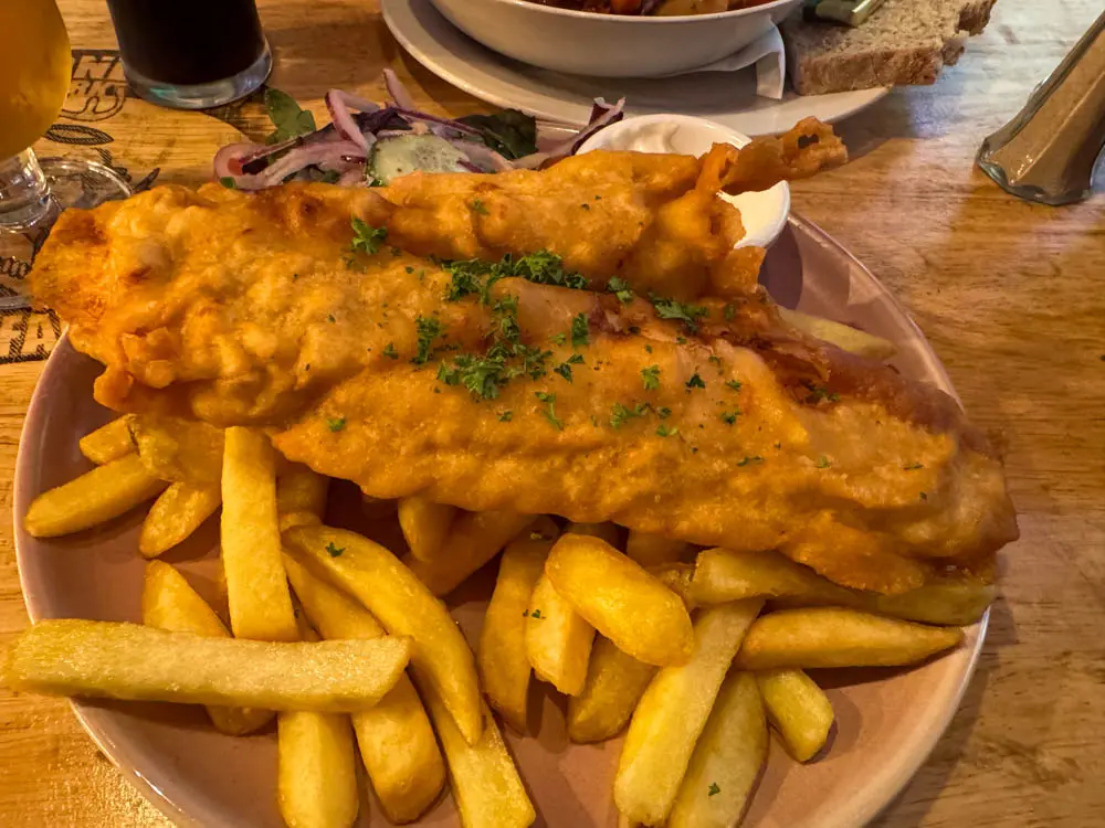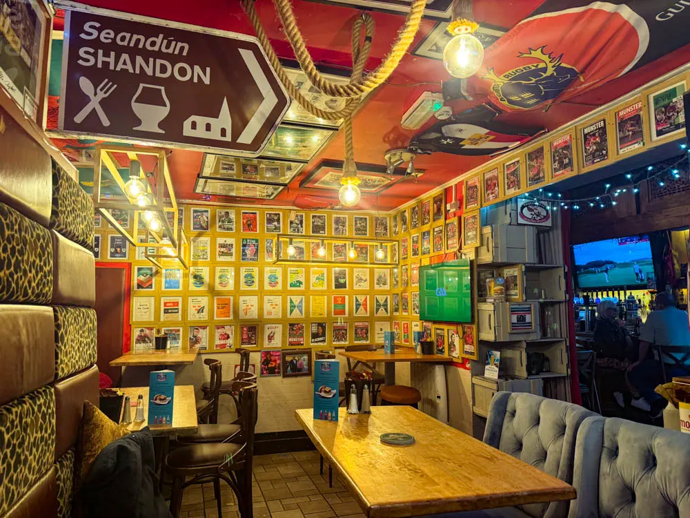 Nous profitons de la pause pour faire quelques recherches et repérer une adresse pour dîner, mais malheureusement ce pub est complet. Dommage, ça avait l’air vraiment sympa. Aussi, nous nous rabattons sur une deuxième adresse proposée par le Routard, un pub haut en couleur dédié au rugby et aux sports en général, avec une bonne ambiance. Cependant, la nourriture sera plutôt moyenne, un ragoût irlandais correct, mais un fish and chips complètement à revoir, limite mangeable. Comme bonne adresse pour diner, on repassera.