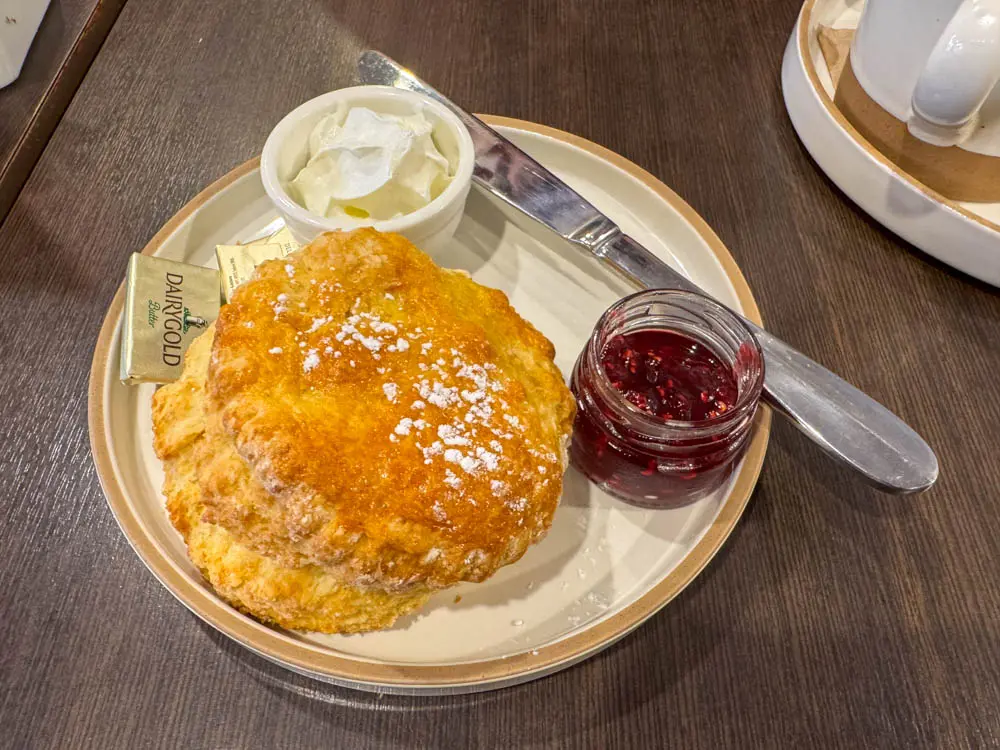 Ensuite, c’est la pause petit déjeuner que nous avions un peu négligé au camping dans un salon de thé, très sympathique où nous goûtons notre premier scone irlandais.
