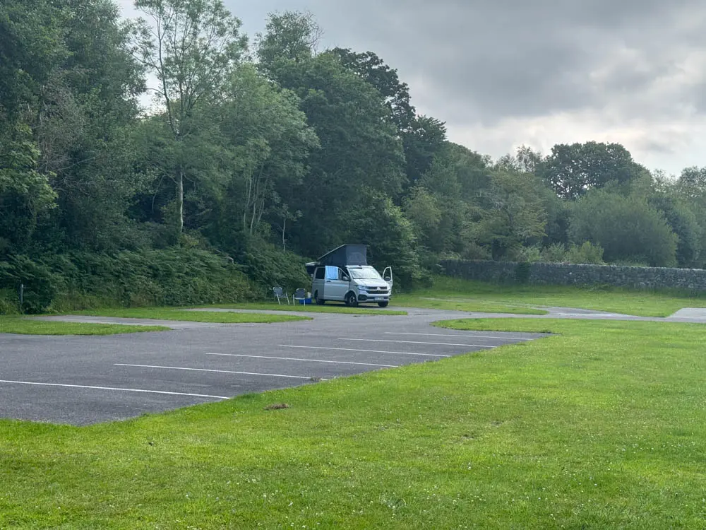 Au niveau du parking, un camping qui a l’air bien agréable, même si sommaire, mais quand même avec douche et toilette dans le pub cafétéria attenant.