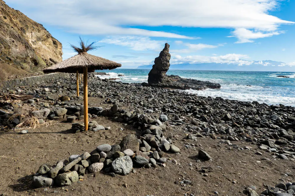 Petit déjeuner comme d’habitude à la maison avant de se mettre en route vers 10 heures. Nous commençons par une petite route menant à une jolie plage, tout proche de l’endroit où nous résidons, la plage de la Caleta, bien agréable. Par contre beaucoup trop de vagues pour pouvoir envisager une baignade, c’est également un coin prisé des vans.