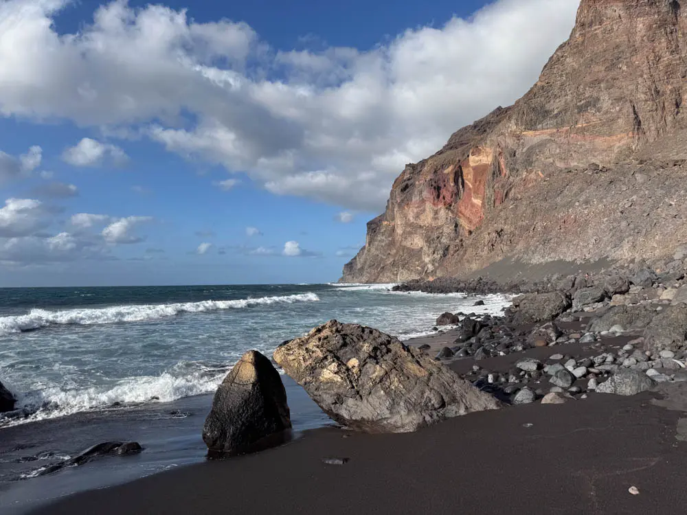 Tout près du port, nous pouvons profiter des vues magnifiques sur les hautes falaises, et là encore une ravissante plage de sable noir, assez fréquentée.