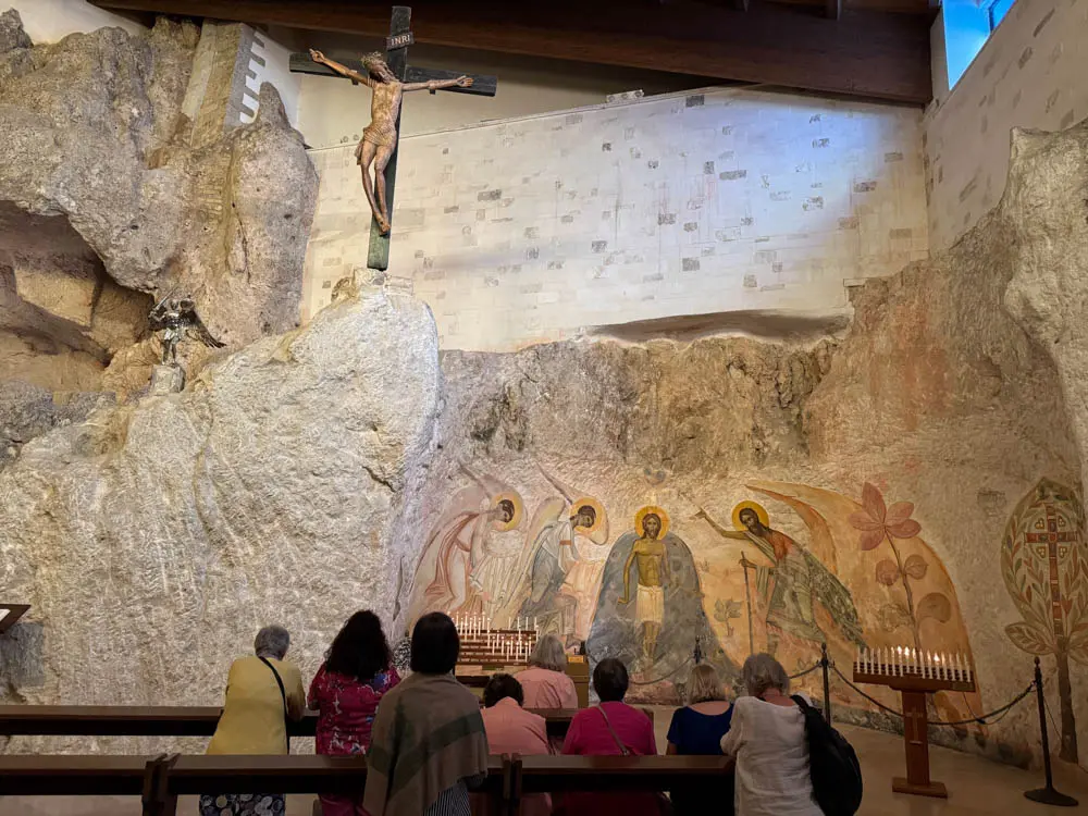Visite rapide de la basilique et de son église sous la grotte en pleine messe, mais on ne traîne pas, beaucoup trop religieux pour nous et pas vraiment emballés par cette ville.