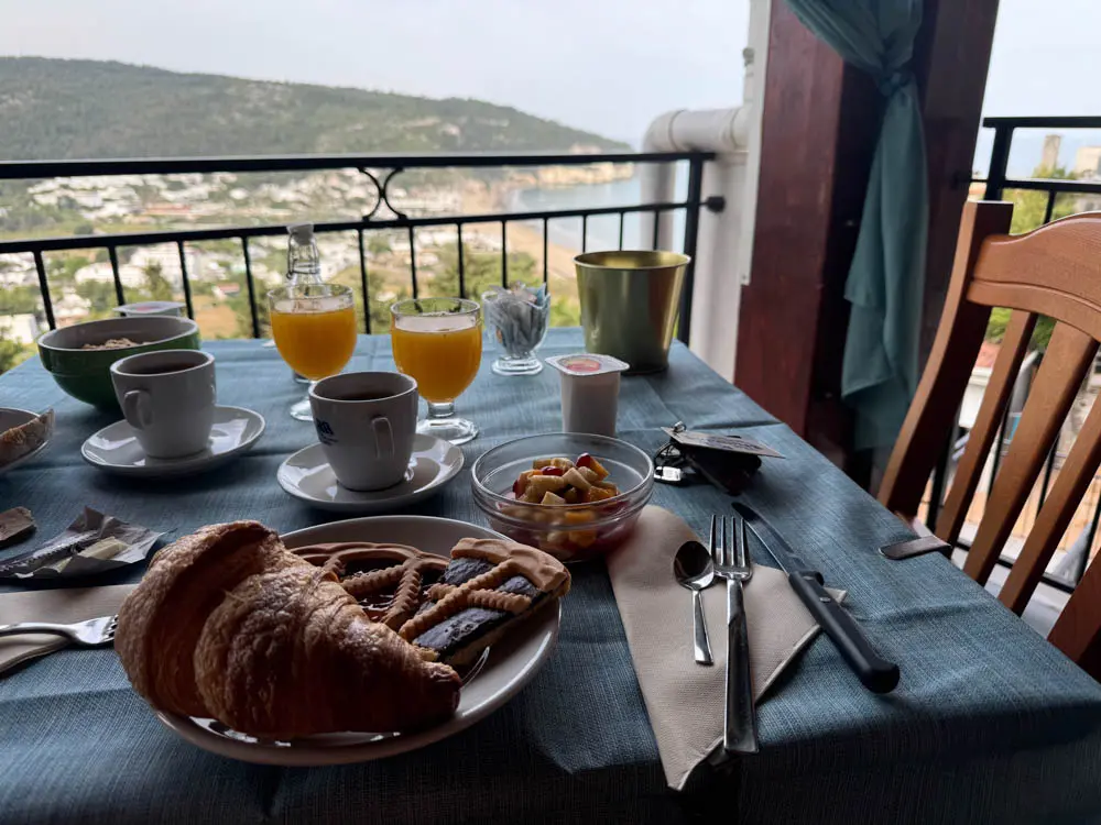 Encore un petit déjeuner buffet sympa sur la terrasse face à la mer : on ne s’en lasse pas !