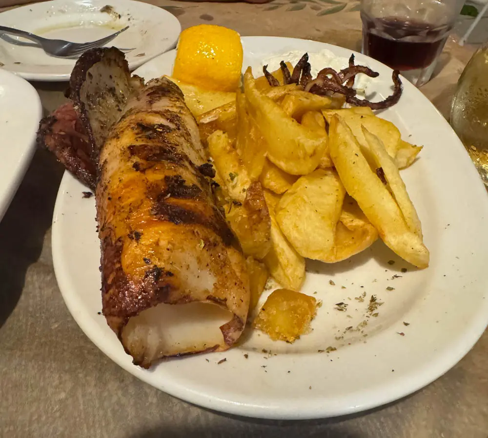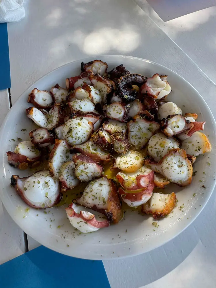 Un restaurant touristique face à la plage, immense terrasse, beaucoup de monde en soirée, bonne ambiance et prix corrects. Accueil sympathique, pastèque offerte en dessert, poulpe grillé convaincant, sèche grillée un peu moins.