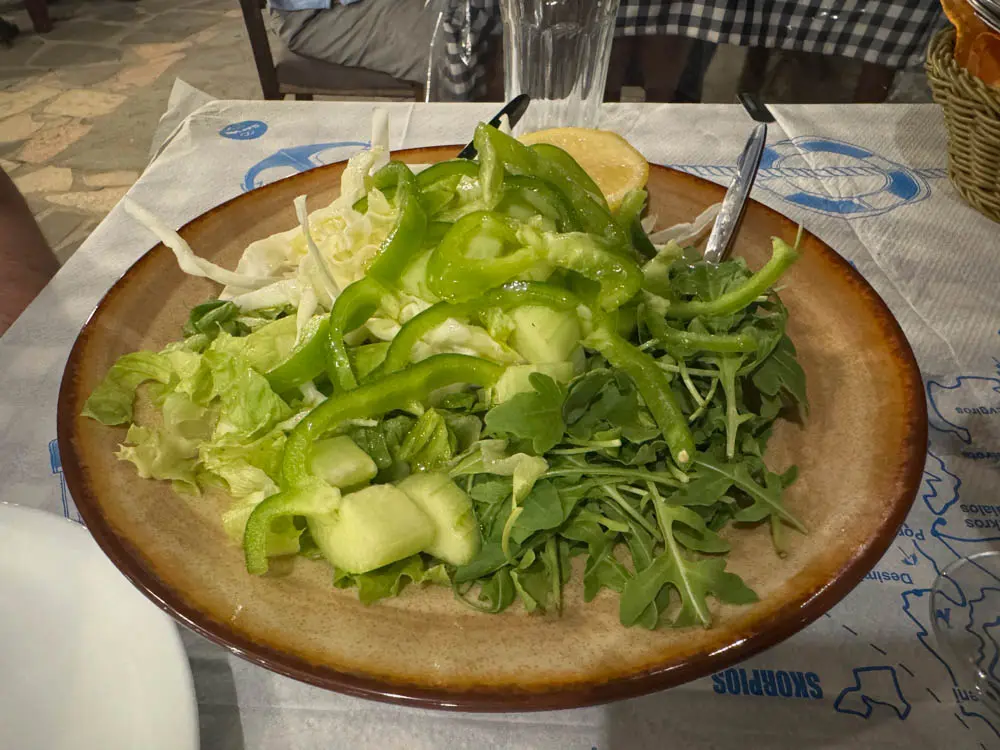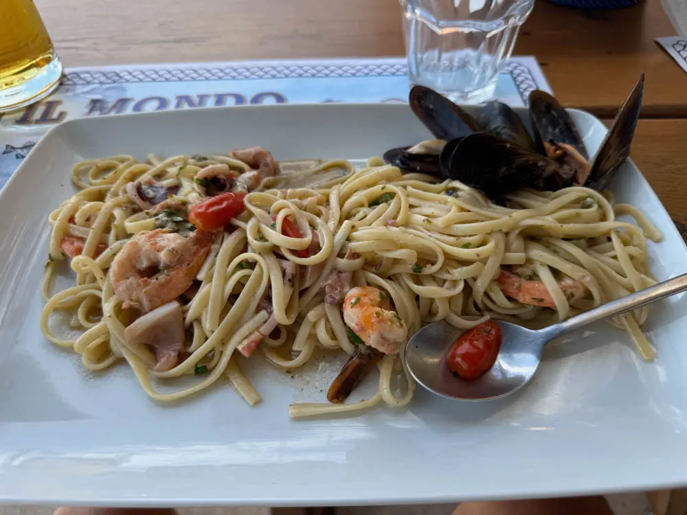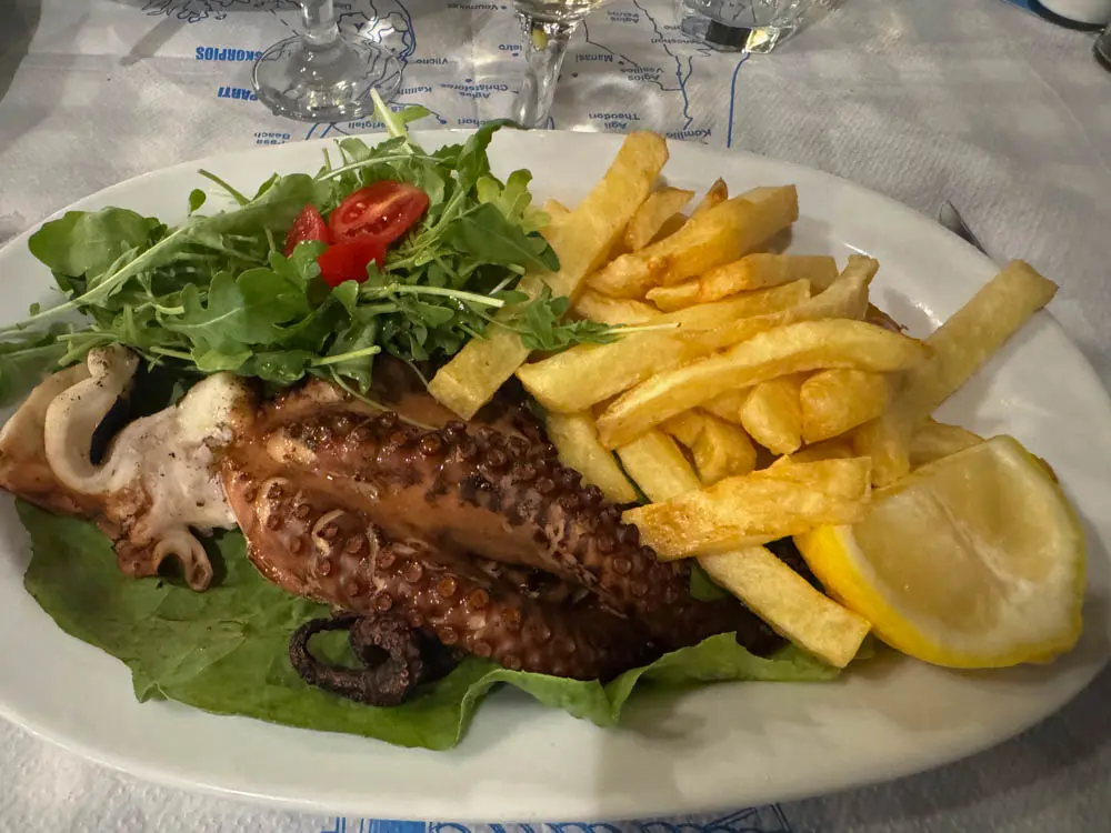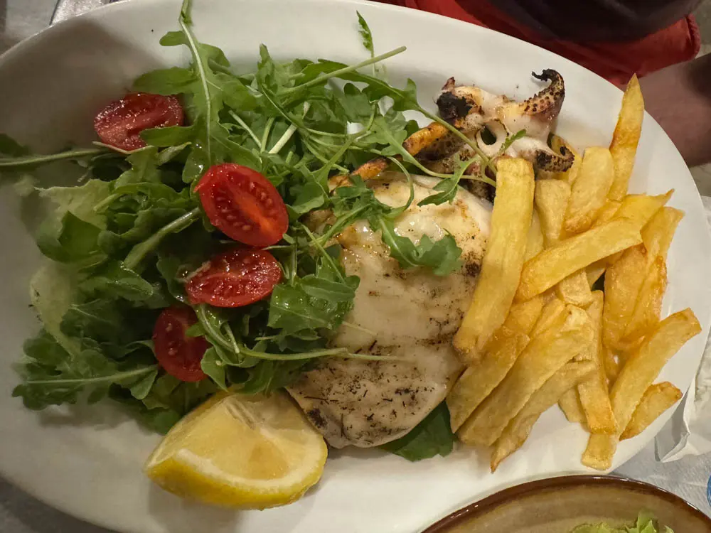 Agréable terrasse du port, beaucoup de monde à l’heure du déjeuner, d’autres restaurants sur le port qui semblait tous proposer la même cuisine.
