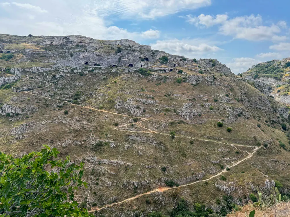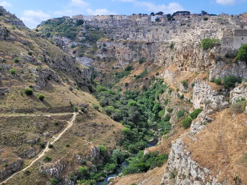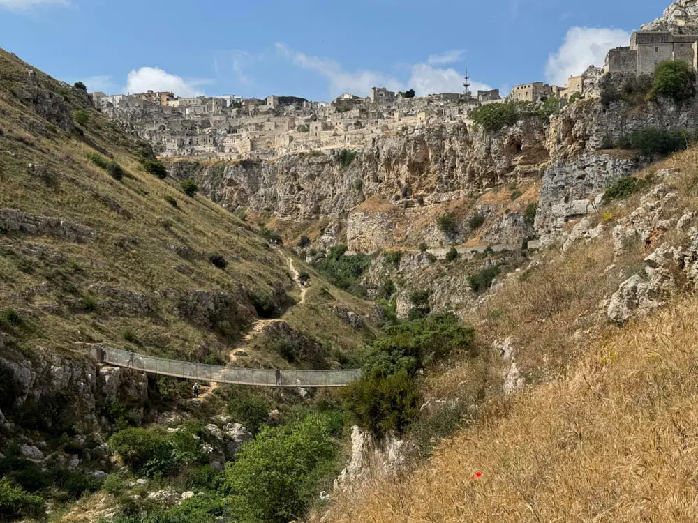 La randonnée la plus populaire de Matera, facilement accessible et permettant d’avoir une vue panoramique sur la ville. Ce sentier te fait descendre dans la gorge de la Gravina avant de la traverser par un petit pont suspendu, puis de remonter sur le plateau de la Murgia.